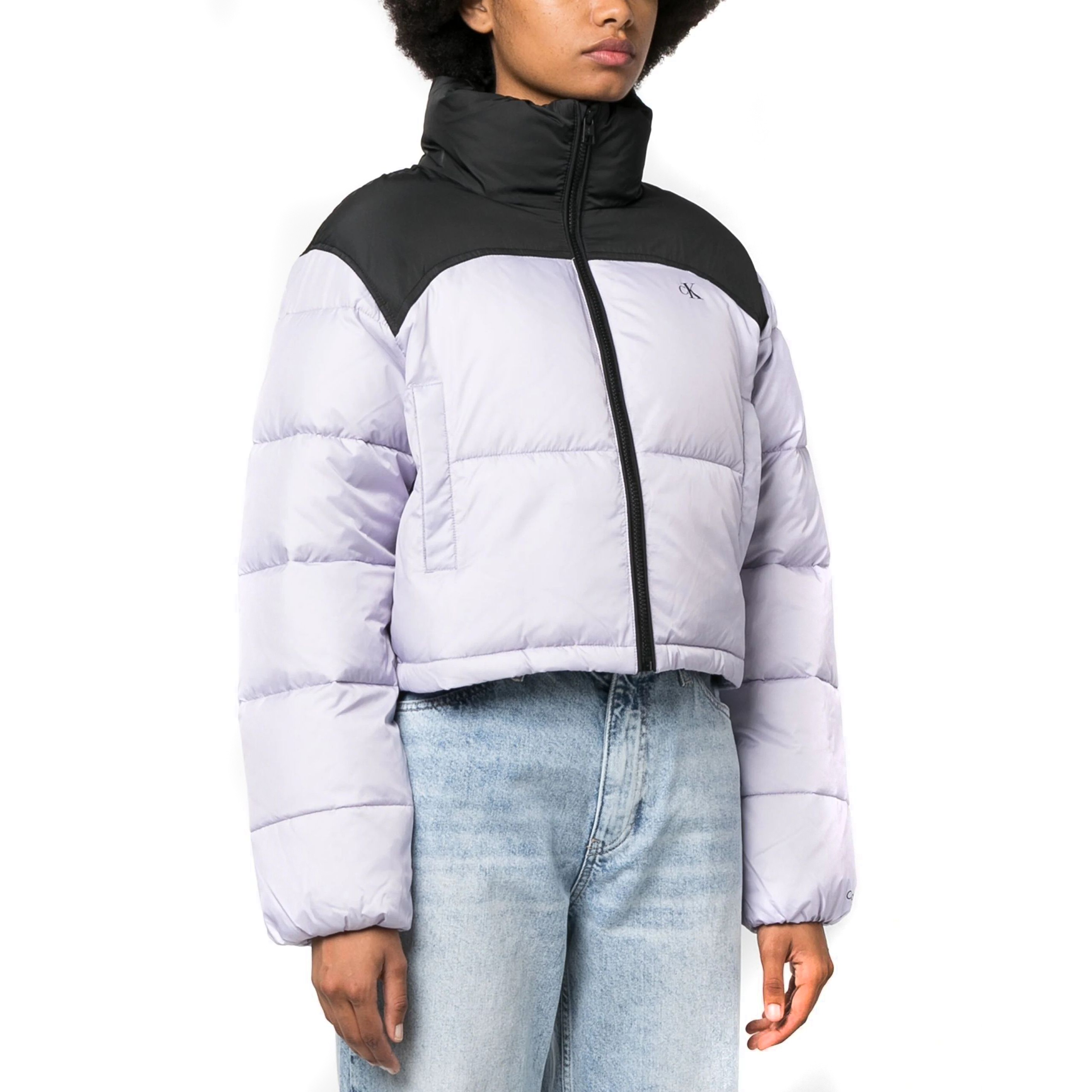 CALVIN KLEIN JEANS Pūkinė striukė moterims, purple, Blocked cropped puffer | Brandsales.lt