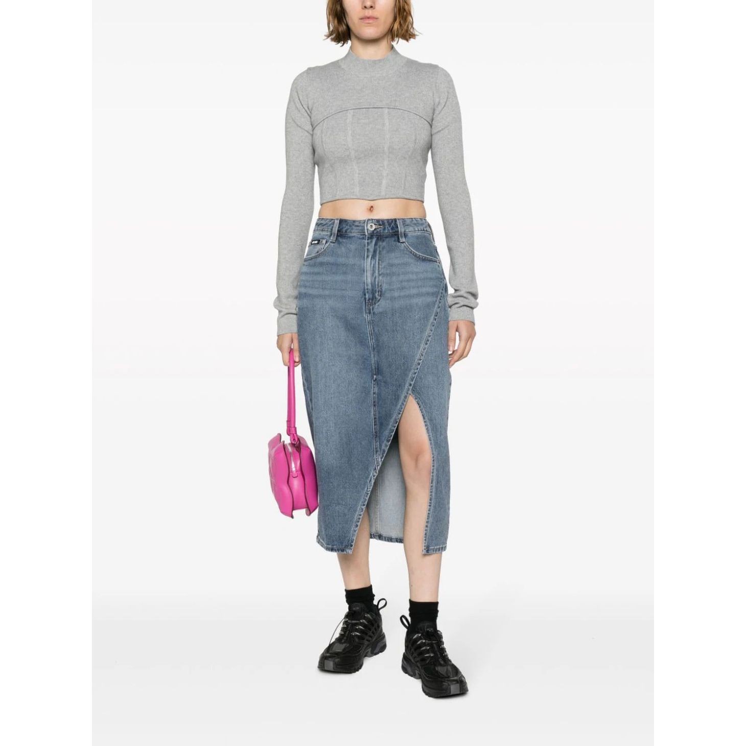 Midi sijonas moterims, Mėlyna, Denim skirt asym slim