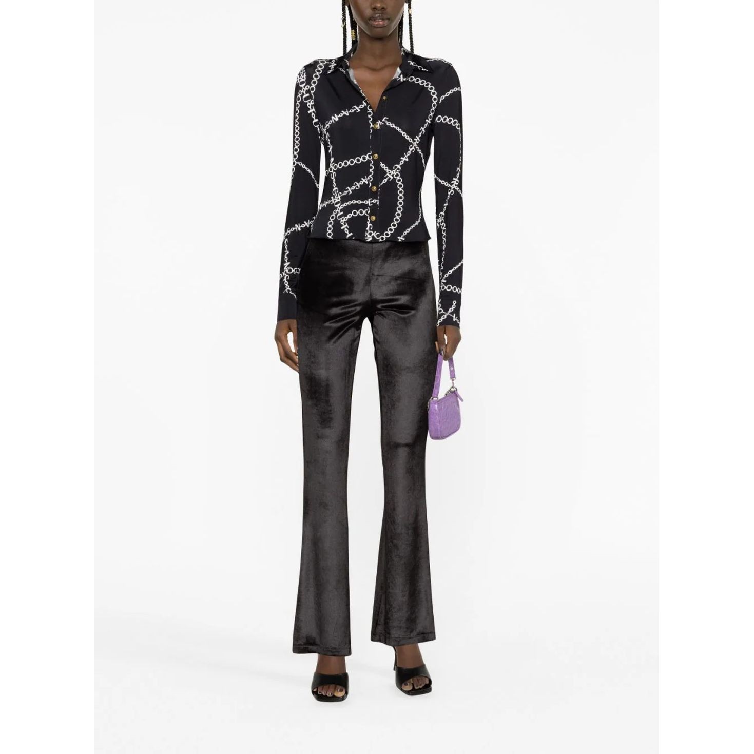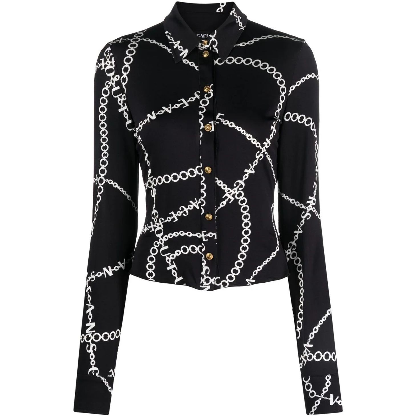 VERSACE JEANS CUTURE Marškiniai ilgomis rankovėmis moterims, Juoda, Chain couture shirt | Brandsales.lt